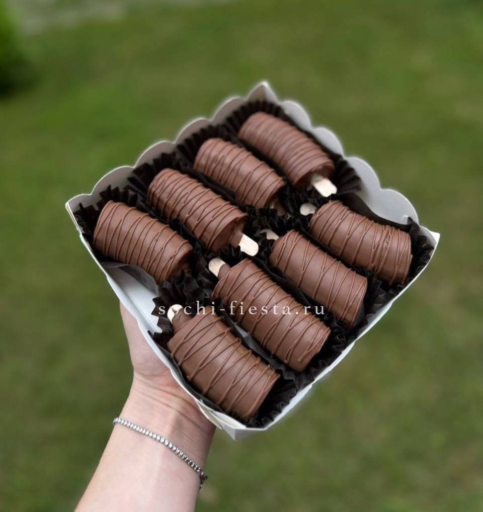 Девять отборных ягод в глянцевой оболочке бельгийского шоколада. Упругая мякоть клубники сохраняет свежесть под тонким слоем глазури. Лаконичная форма и ровный ряд создают графичное впечатление.
